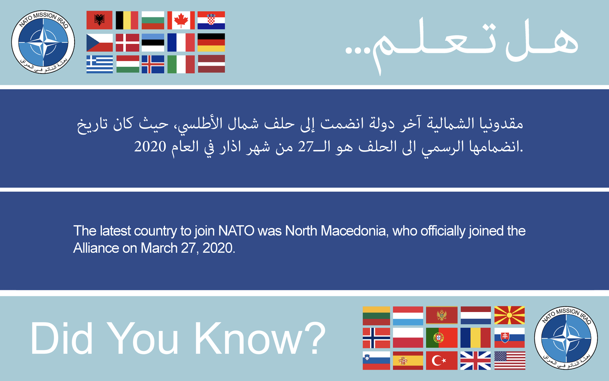 "The [NATO Mission Iraq] supports Iraq in strengthening its security, institutions & armed forces"